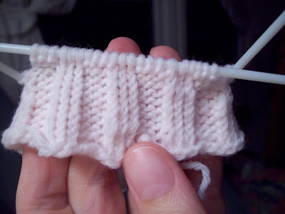 This evening, after delicious pizza for supper, I knitted some more. Here you can see the ribbing that is at the top of the sock. This ribbing is actually on the back of the ankle.