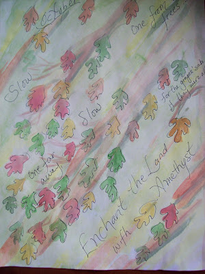 Today, Julia pleaded with me to paint. It's been a while. She memorized the poem "October" by Robert Frost, so I put a few of its lines in my painting for today: