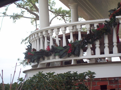This is the prettiest house in town. I love this curved railing out front, with its deep green swag.