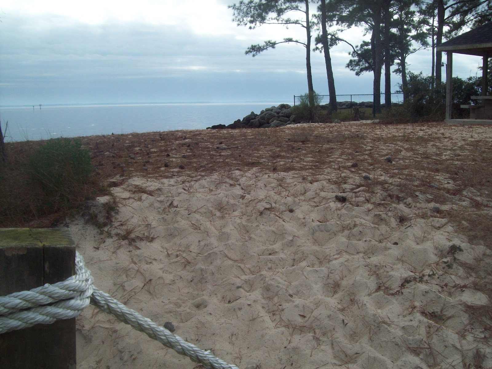 The beach is covered with pine straw now.